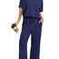 De top heeft een los, soepelvallend ontwerp met korte mouwen dat comfortabel over het lichaam valt, terwijl de wijde broek boven de enkel is afgeknipt voor een moderne, flatterende look. Dit alles komt samen in een vloeiende, stijlvolle set die gemakkelijk te dragen is en moeiteloos verfijnd oogt.